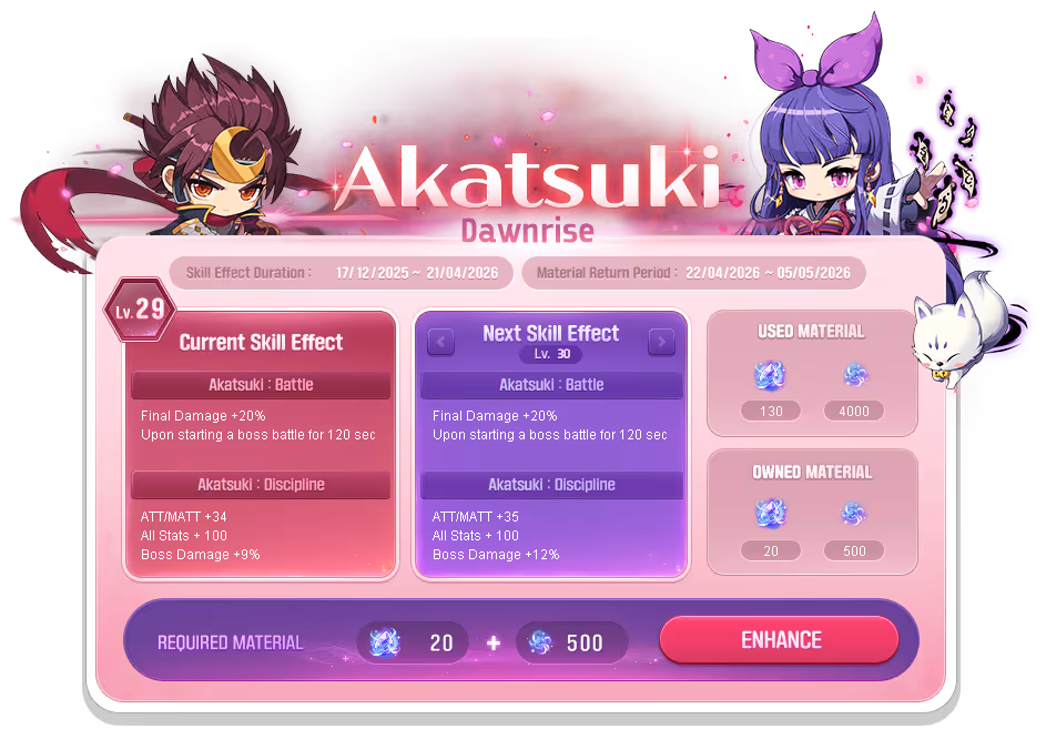 TIP: All enhancement materials are returned after the event, ready for your Reworked skills!